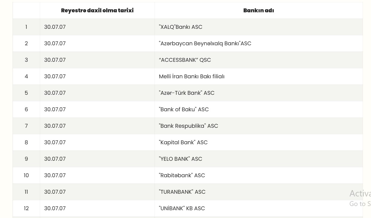 Əmanətlərin Sığortalanması Fonduna üzv bankların reyestri açıqlanıb Bank 29.01.2026 Ən sərfəli nağdlaşdırma hansı bankdadır? Əmanətlərin Sığortalanması Fondu (ƏSF) "Əmanətlərin sığortalanması haqqında" Qanunun 30.1-ci maddəsinə əsasən iştirakçı bankların 29 yanvar 2026-cı il tarixinə olan reyestrini açıqlayıb: Bizi sosial şəbəkələrdən izləyin!! Facebook Instagram Telegram Banco.az Play Market-də Müəllif: Gülnar Əhmədli KREDİT SİFARİŞ ET Bizi Telegram-da izlə!